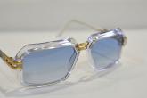 クリアフレームにブルーレンズ